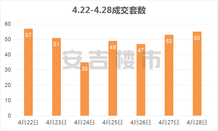 日均签约50套,其中4月22日为本周签约之最,签约57套。